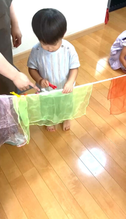 洗濯ばさみは、掴んだり握ったり、脳の発育を促進します